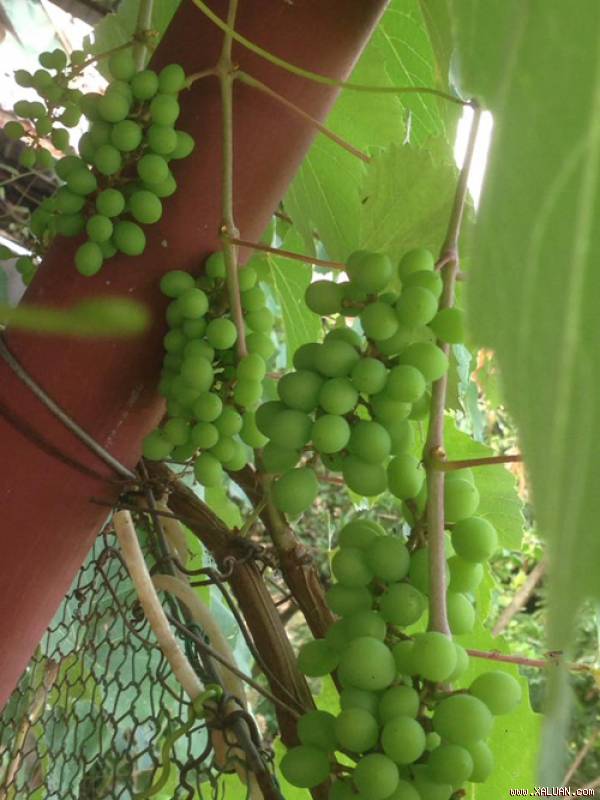 Trái nho non có màu xanh đẹp và nhỏ. Mỗi chùm nho cho nhiều quả sai trĩu cành