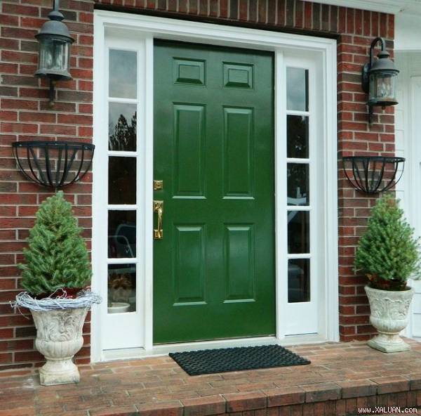 Gam màu xanh lục được xem là màu gốc của tự nhiên. Gam màu này được sơn cho cửa chính nhằm mang lại vẻ đẹp thân thiện, gần gũi của thiên nhiên đến với ngôi nhà của bạn. Nếu cửa chính được sơn màu xanh lục, hãy sơn trang trí màu trắng cho viền cửa và thêm pha một vài chậu cây trang trí để thềm nhà thêm đáng yêu và cuốn hút hơn.