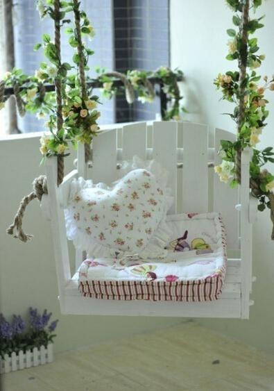 Biến góc ban công khiêm tốn thành một vườn hoa nhỏ, điểm nhấn bằng chiếc xích đu xinh xinh sẽ thu hút bé nhà bạn. Tuy nhiên cần chú ý khi bé chơi đùa ở góc “thần tiên” này cần có người lớn ở bên để đảm bảo an toàn. Bạn có thể cùng bé ngồi ca hát, kể chuyện và không gian bắt mắt này cũng giúp kích thích khẩu vị của bé trong bữa ăn dặm chẳng hạn.
